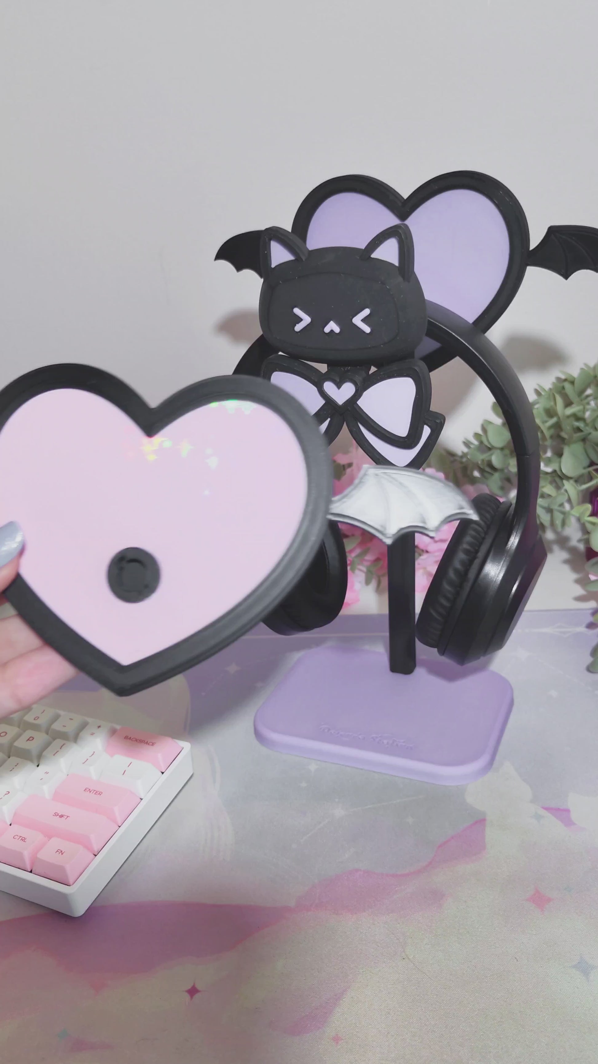 Add some magic to your desk setup with the cute Descora Headphone Stand! Designed as a magical cat motif with a cute ribbon and an adorable heart in the back. It comes with all accessories shown and is sold as a complete set. However you can easily swap out the accessories for other ones which are available separately!